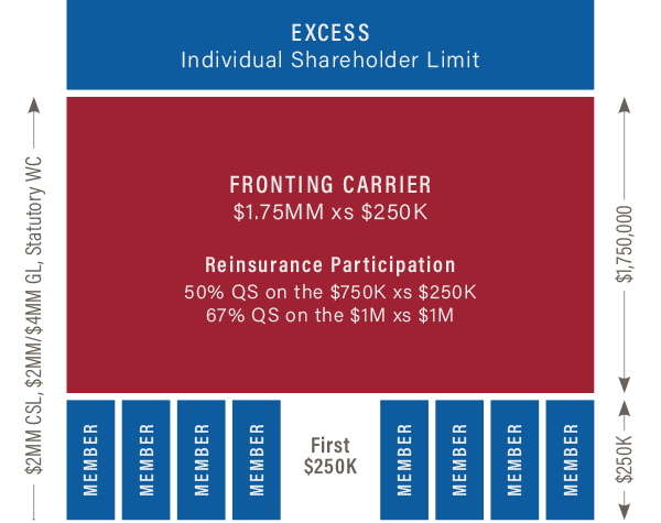 NUCA Assurance provides coverage for workers’ compensation (statutory limits), general liability ($2MM/$4MM/$4MM limits), and auto liability ($2MM CSL).